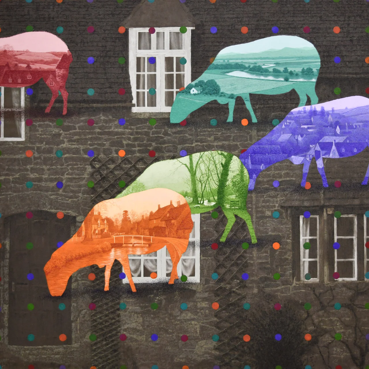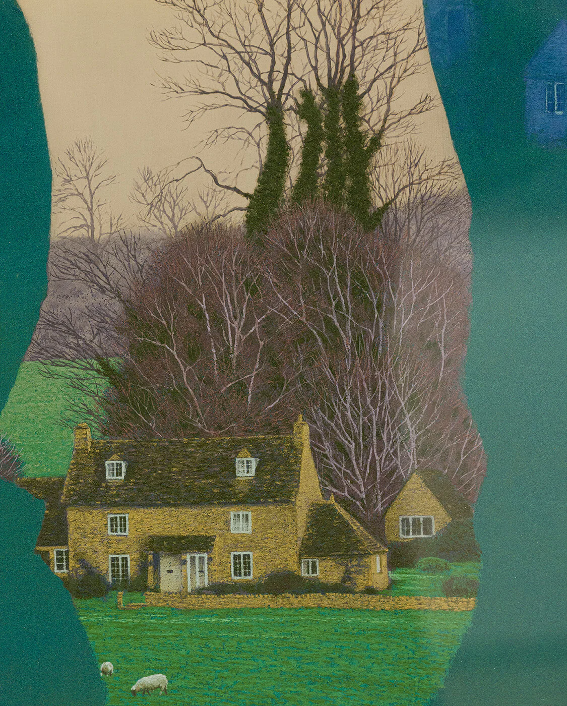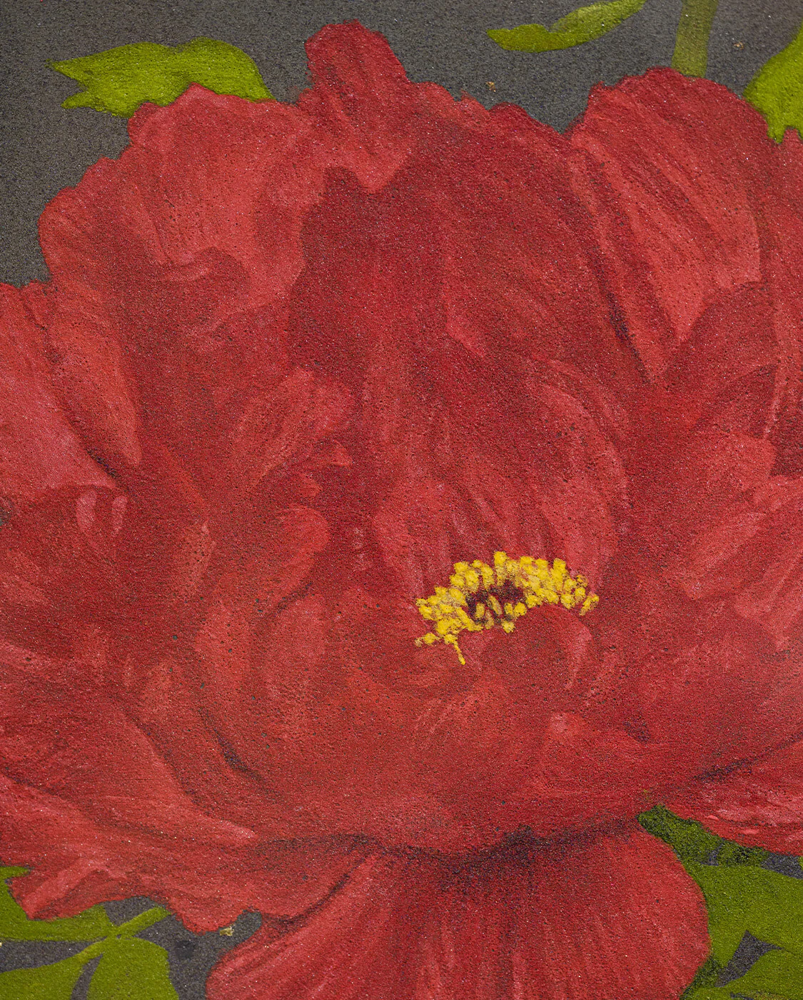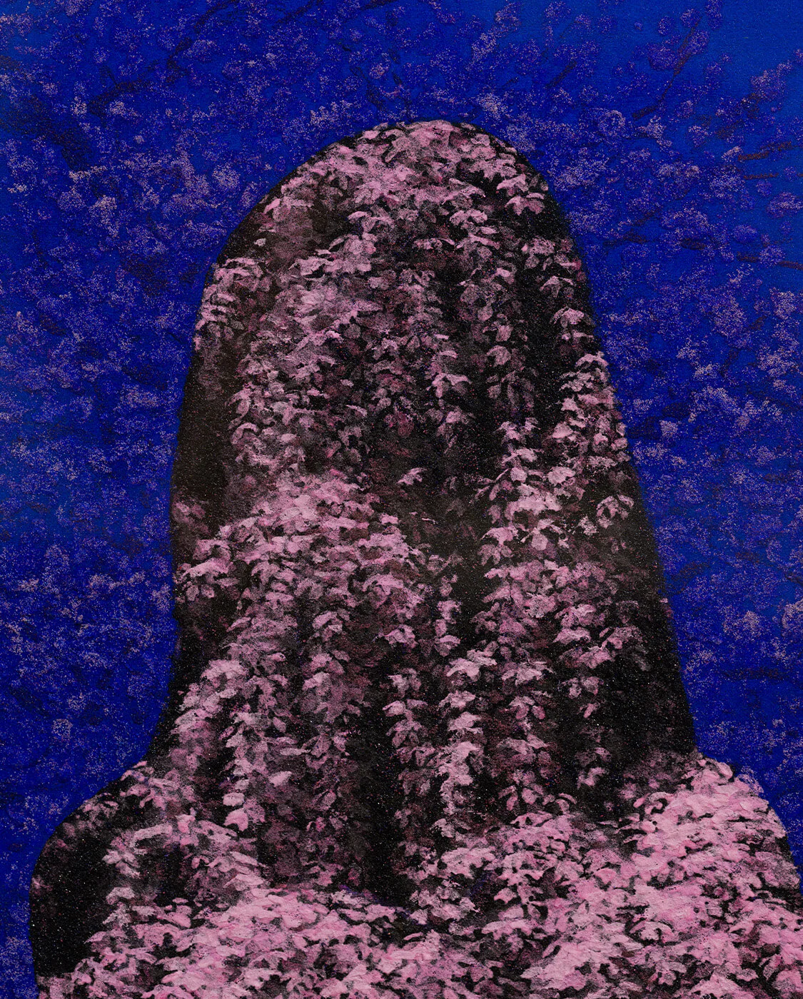 #岩彩 是二川在創作中使用的主要材料。這種塗料被用於傳統日本繪畫,它由研磨成粉粒狀的天然礦石製成,繪畫時混合膠液使用,將顏料黏附在畫紙上,隨著顏料的堆疊變得更加鮮艷和醇厚,營造出獨特的縱深感。二川畫作的色度介於寫實與夢幻之間,像是融合藝術家內心的一片記憶。二川長年與此物料磨合,掌握使用顏料勾畫細節。礦物顏料呈現出鑽石般獨特的色彩和光澤,呈現純粹的風景之美和藝術家對自然的愛戴。